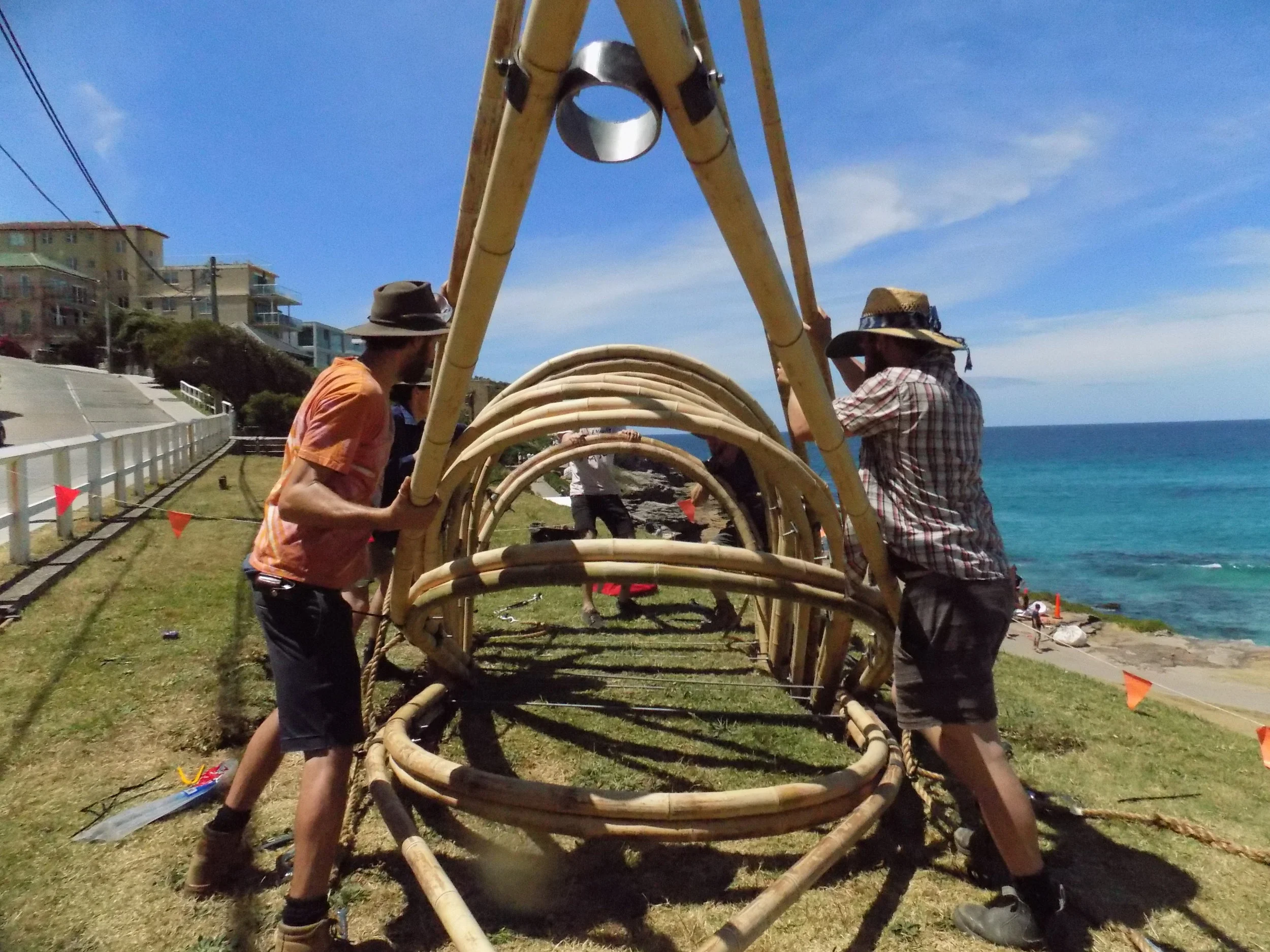 'Lanna Landcraft' 2015, Bamboo, hessian rope, steel 'lim'. 1.8w x 5.3d x 4.7h.